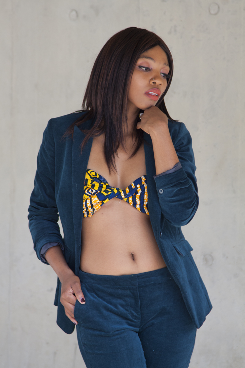 This power suit is defs a firm favourite of mine, although I normally wear separate pieces of the suit at a time. This hue! I wish I could find more clothing items in this dark emerald green. I paired it with a printed cloth that I bought in Mozambique a few years ago. I just put the cloth over my boobies, twisted it over in the middle, then asked my helpful assistant ( husband) to just pin it down for me. I know I’m not wearing any shoes in this shoot, but it works right? My aim this year is to try support local brands/ designers, so I’m currently saving up for that which is why I’ve been such a repeat offender of late. I won’t lie local is lekker, but s darn expensive. I guess you have to pay for quality! Also guys, Connie Transform lippie is a must try, please check out her page on Instagram. Her lippies are absolute quality and really long-lasting, I’m quite impressed. Please go support a sister,giving us a proudly South African beauty product that gives Mac a run for their money!